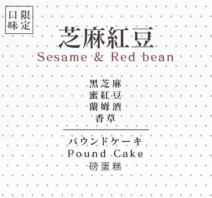傳統與傳統的創新口味,黑芝麻跟蜜紅豆都是台灣的傳統口味。記得在澳門的時候,很喜歡吃一道叫「紅黑」的糖水(甜湯),紅是指紅豆沙,黑是指芝麻糊,就是兩種混在一起的糖水,既有紅豆的甜蜜,也有芝麻的碳焙香,也只有在地人才知道的吃法,把台灣的傳統作物、港澳的在地傳統口味,加入在磅蛋糕當中,是像「紅黑」的美味,加上磅蛋糕濃郁與細緻。