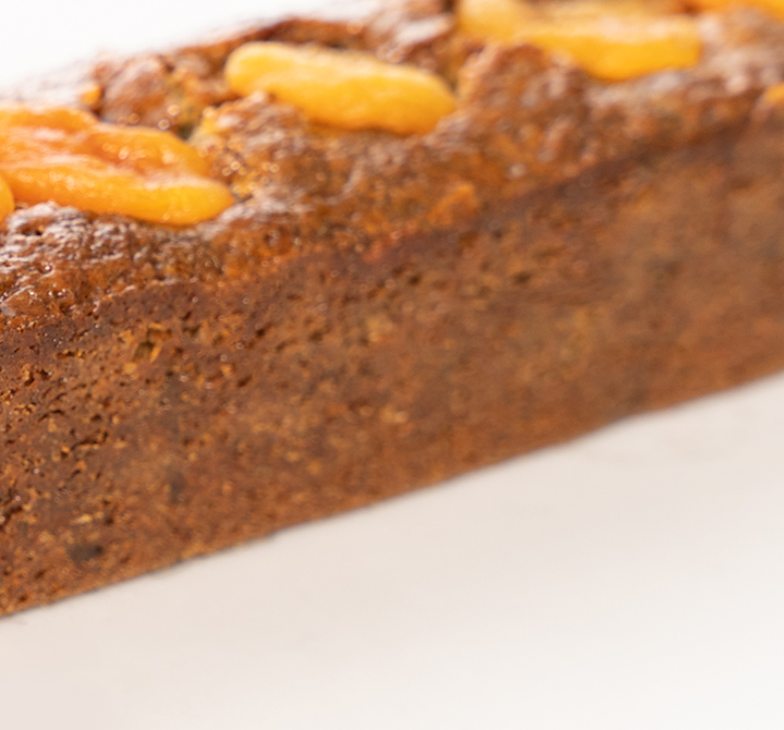 「磅」蛋糕的名字是來自於原配方是「1磅麵粉、1磅砂糖、1磅蛋、1磅奶油」,這是經典配方;而我們的磅蛋糕比例上重新調整,帶來外層焦香,內部棉密濕潤的究極口感,秘訣是在於無水發酵奶油以及香気材料的使用!