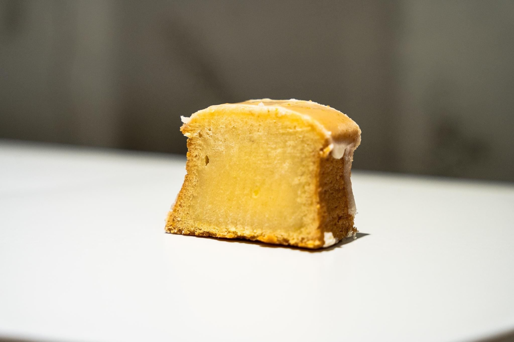 到了檸檬蛋糕2歲時,我希望蛋糕呈現的味道可以更柔和,所以以法國黃檸檬取代了原本的綠檸檬,用來做成焦糖色的檸檬糖霜,帶來糖果香氣跟更濃郁深刻的檸檬香味。